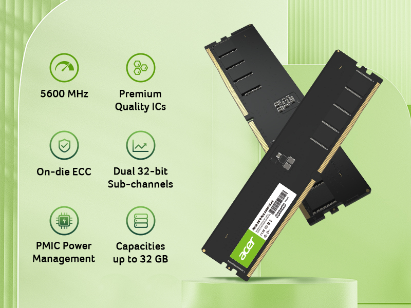 Acer UD200 16GB DDR5 4800MHz CL40 1.1V 1R*8 UDIMM Desktop Memory