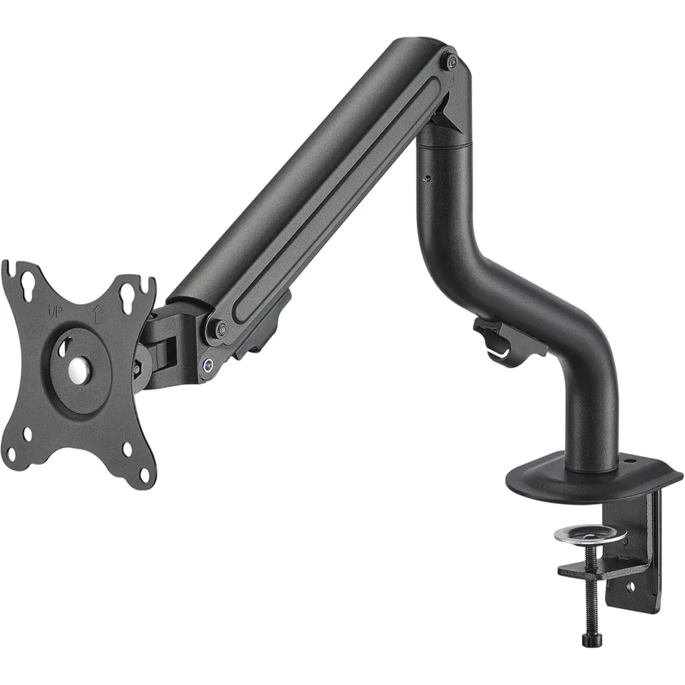 - The gas-spring monitor arm allows you to adjust the arm’s stiffness to support the weight of the monitor and help prevent impact.