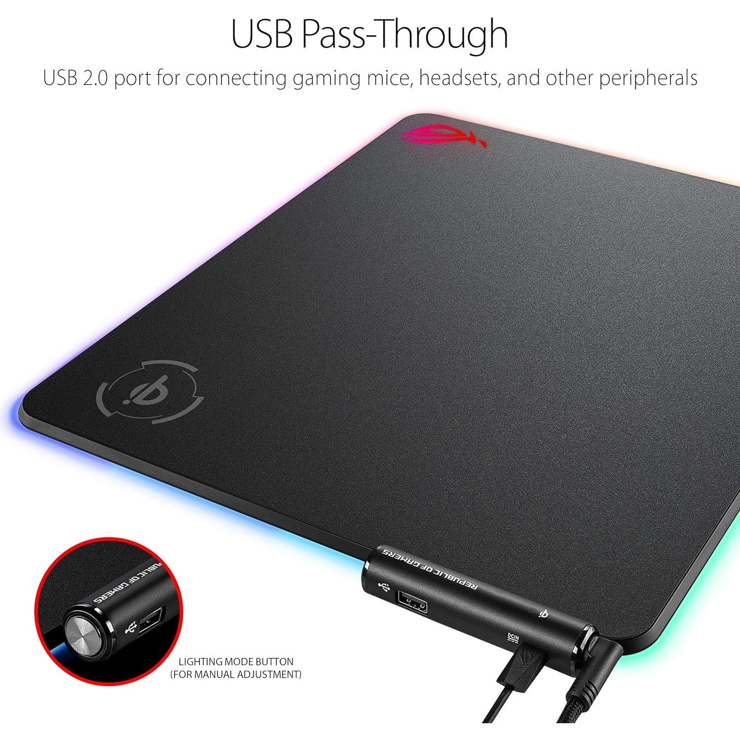 - Stylish nonslip rubber base features ROG cybertext graphics