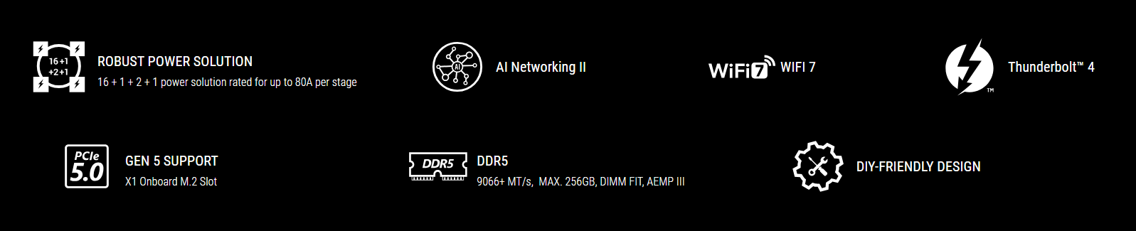 With NPU boosting and cutting-edge AI solutions, the ROG STRIX B860-F Gaming WiFi supports advanced AI PC applications. Featuring Thunderbolt 4, PCIe 5.0, and Aura Sync lighting, it offers ultra-fast data transfer speeds, exceptional connectivity, and a versatile aesthetic that suits both bold and subtle styles.