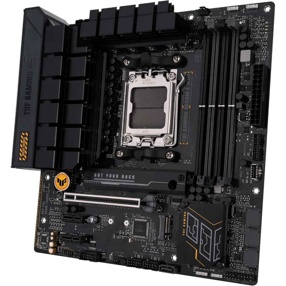 ASUS TUF GAMING B650M-E takes all the essential elements of the latest AMD Ryzen Desktop Processors and combines them with game-ready features and proven durability.