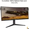 • 34-inch QHD (3440 x 1440) 1500R curved gaming monitor with 180Hz refresh rate designed for professional gamers and immersive gameplay
