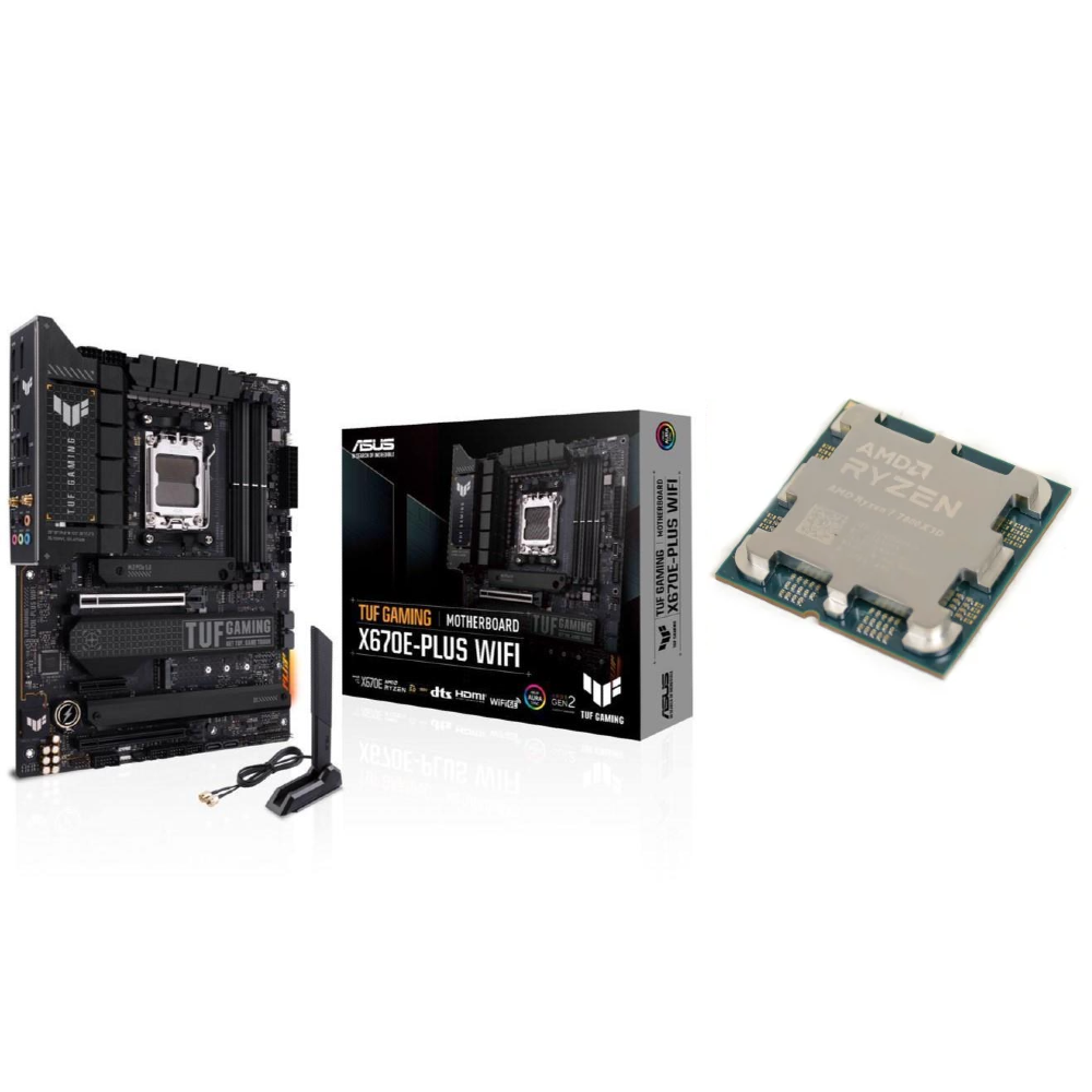 Gaming Combo – ASUS TUF GAMING X670E-PLUS WiFi AM5 DDR5 ATX Motherboard with AMD Ryzen 7 7800X3D Processor *TRAY*
