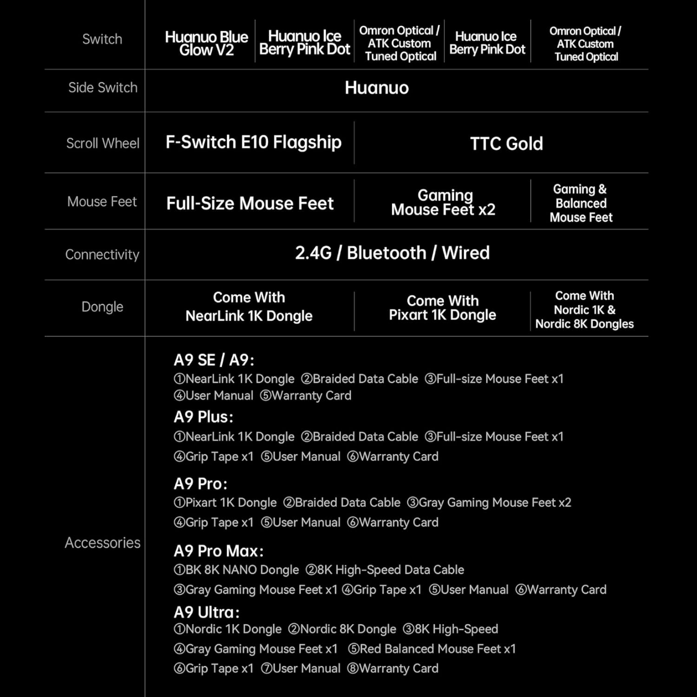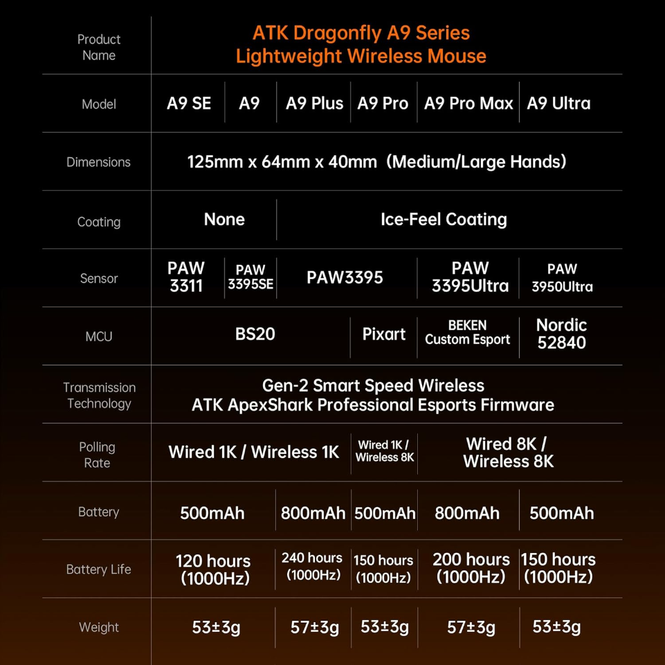 Released in 2026, the ATK Dragonfly A9 Plus 2.0 Lightweight Wireless Mouse is an upgraded evolution of its predecessor, featuring a more advanced sensor and refined performance. Designed for gamers who demand speed and precision, its ultra-light 57g build and versatile connectivity make it a strong choice for both competitive play and daily use.