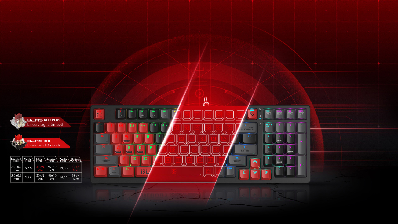 Bloody S98 Mechanical Gaming Keyboard – Red Switches – Sports Red