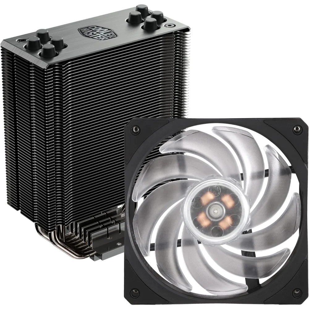 Cooler Master Hyper 212 RGB RR-212S-20PC-R2 CPU Air Cooler with SF120R PWM Fan, Gun-Metal Nickel Fins, 4 Copper Heat Pipes – For AMD Ryzen & Intel LGA1700/1200/1151