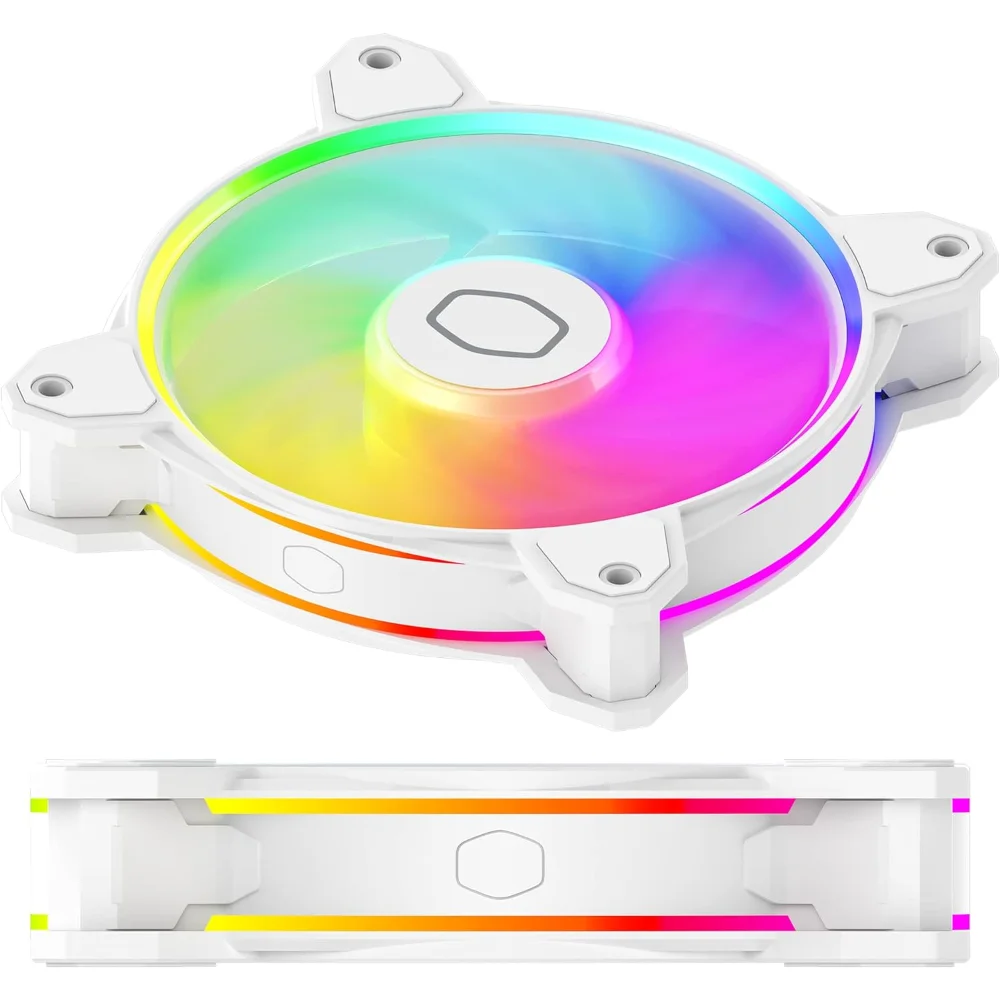 Cooler Master MasterFan MF120 Halo² White Fan, Duo-Ring ARGB Gen 2 LED Rings, 120mm 2050rpm Dynamic PWM, Enlarged Fan Blades, Hybrid Frame for PC Case, Liquid and Air Cooler