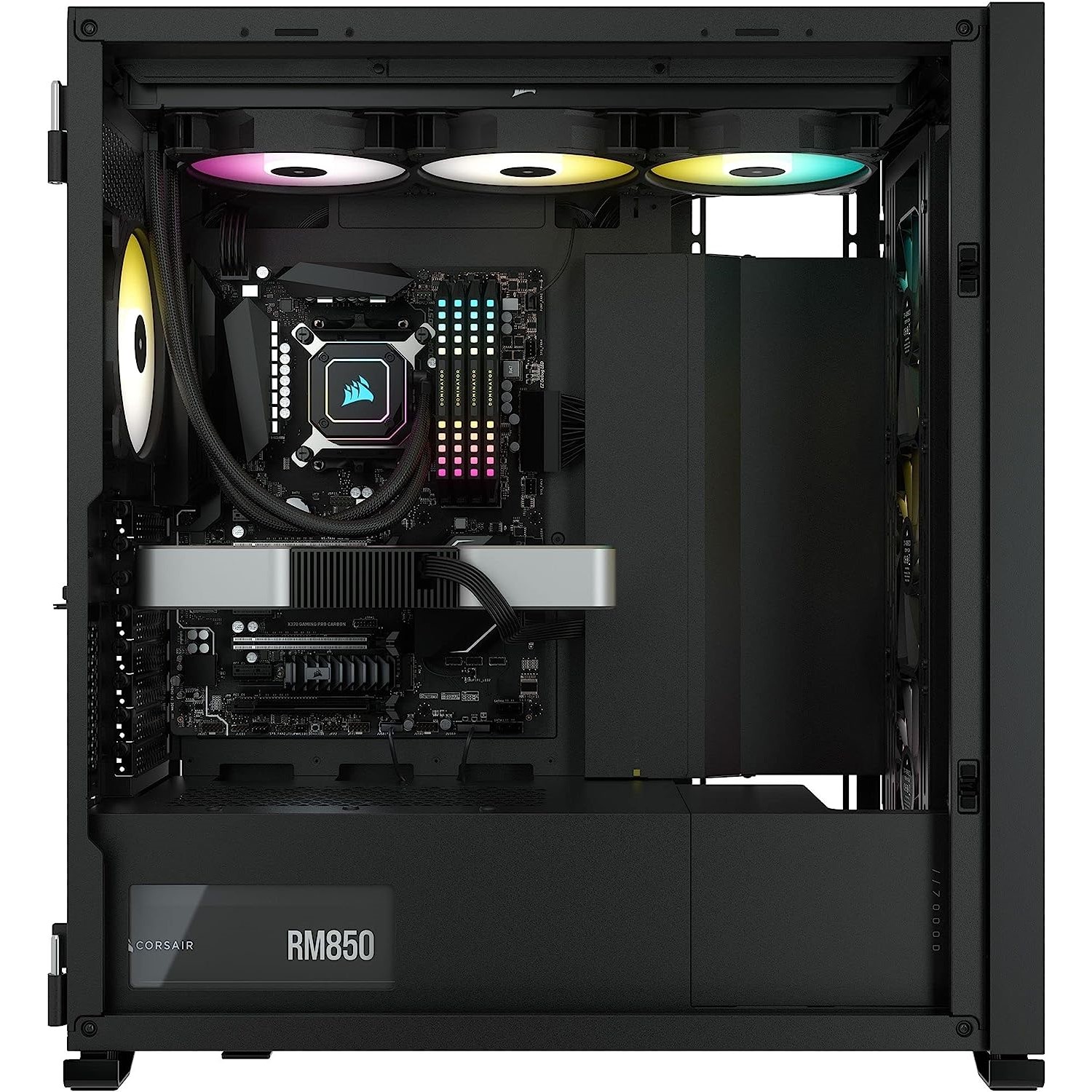 - Includes three CORSAIR 140mm AirGuide fans and PWM fan repeater, utilizing anti-vortex vanes to concentrate airflow and enhance cooling.