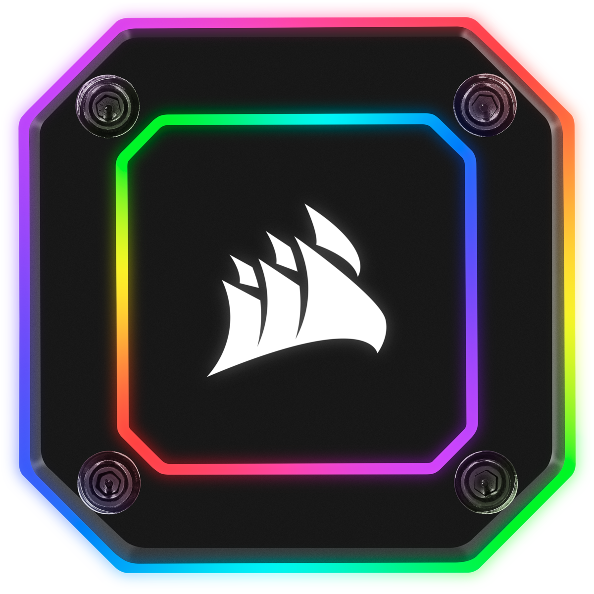 - Two 120mm CORSAIR ML RGB Magnetic Levitation PWM fans deliver powerful airflow for extreme CPU cooling performance, with eight RGB LEDs per fan.