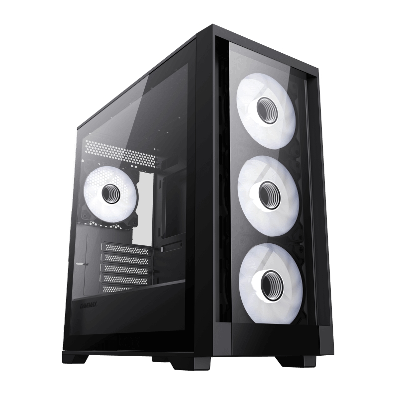 - GameMax Defender TG Micro-ATX Gaming PC Case, has 2 tempered glass fronts and sides, Top support 360 liquid CPU cooler, Pre-installed 4x ARGB Fans, showcases your PC components and ARGB lighting. it will help you build the coolest computer chassis.