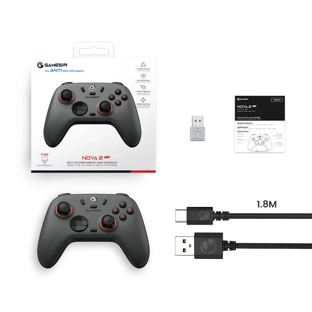 GameSir Nova Lite 2 2.4g Wireless Controller for Windows PC, iPhone, Android, Switch & Steam Deck, Bluetooth Controller Gamepad with Hall Effect Trigger, Mechanical Circular D-pad, Turbo, Dual Asymmetric Motors, 1000Hz Polling Rate – Midnight Gray