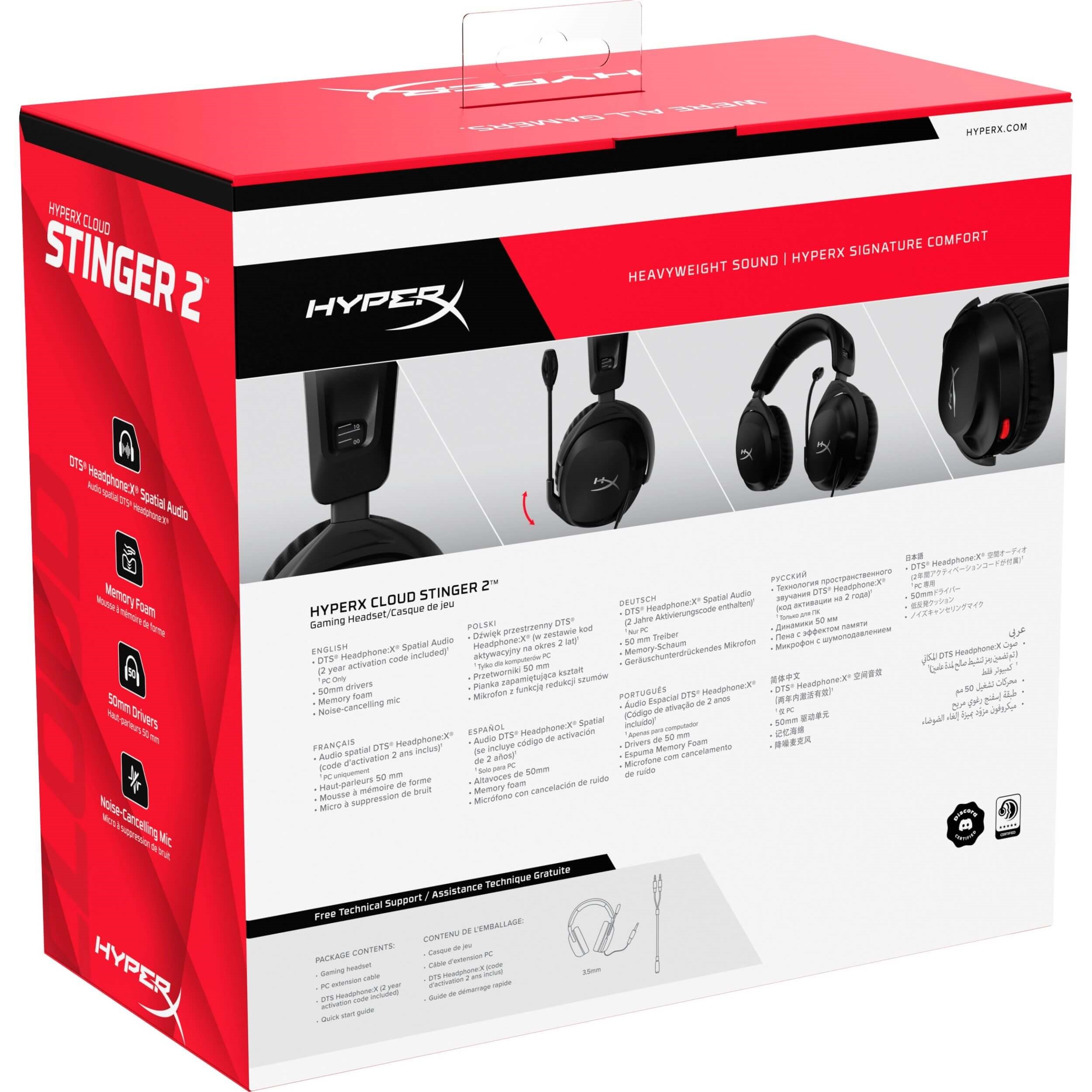 HyperX Cloud Stinger 2 Gaming Headset, DTS Headphone: X Spatial Audio, Lightweight Over-Ear Headset with mic, Swivel-to-Mute Function, 50mm Drivers, PC Compatible