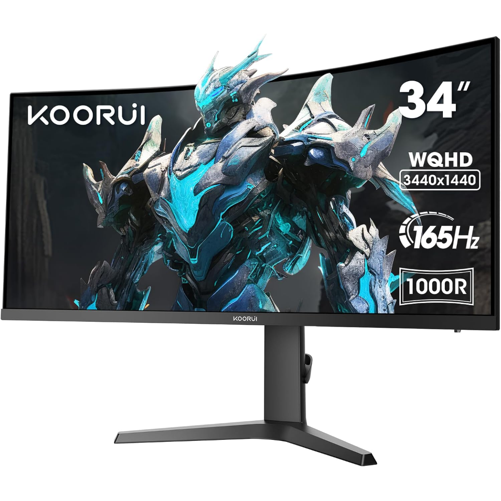 EAGLE WING DESIGN: The design of the computer screen is inspired by an eagle spreading its wings. The ergonomically shaped stand enables the 165Hz Gaming Monitor to be tilted for -5~20°, swivel for -15~15°, and height adjusted for 110mm. The computer monitor 34 inch is VESA compatible 75x75mm and allows you to save more space in your environment. Koorui 34e6uc also have picture-in-picture and picture-by-picture modes, and black equalizer function which can enhanced visibility in dark scenes.