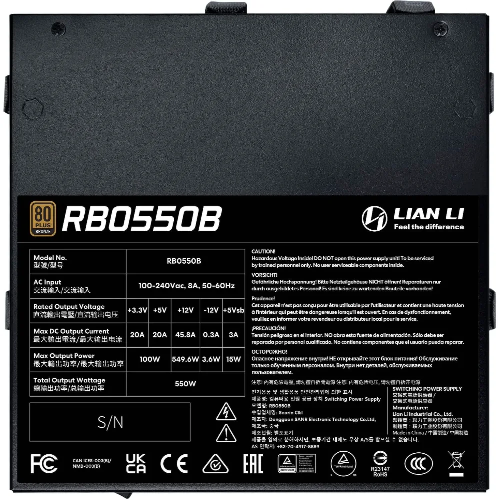 • EFFICIENT POWER SUPPLY: Lian Li RB 550W 80 Plus Bronze Power Supply certified with up to 85% efficiency – less energy loss and lower waste heat for stable operation.
