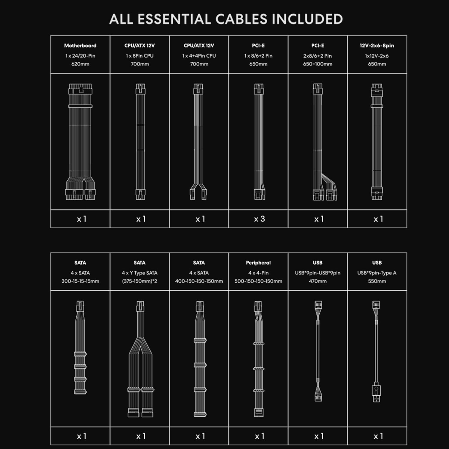 • Dual-Color 12V-2×6 Cables – Safer Connections: Easy identification with dual-color cables and upgraded welded terminals. Lower resistance and enhanced heat tolerance for safer, stable connections.
