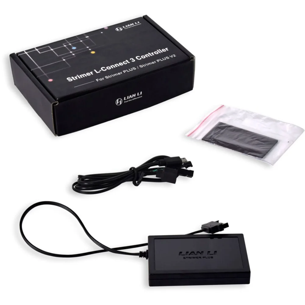 The Lian Li Strimer L-Connect 3 Controller is designed to provide you with a convenient way to control the lighting and illumination effects of your Strimer Plus and Strimer Plus V2 RGB extension cables.