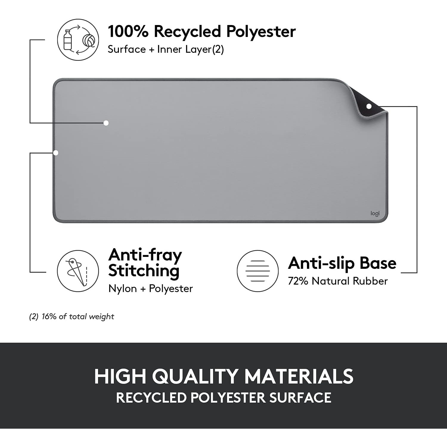 Logitech Desk Mat Studio Series with Spill-resistant Durable Design Extended Mouse Pad – Mid Gray
