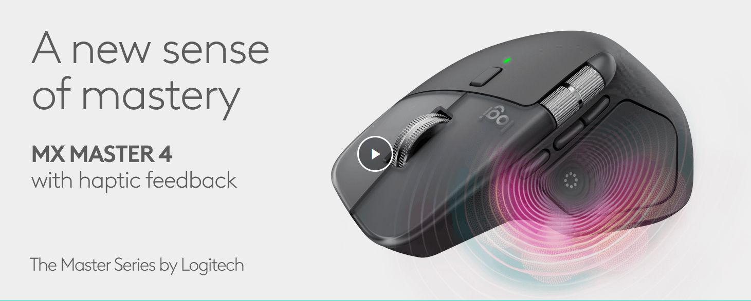 Logitech MX Master 4, Ergonomic Wireless Mouse with Advanced Performance Haptic Feedback, Ultra-Fast Scrolling, USB-C Charging, Bluetooth, Windows, MacOS – Pale Gray