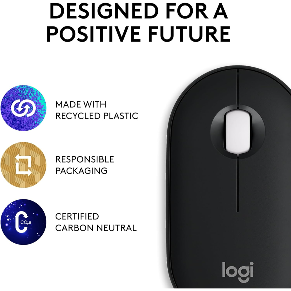- A Design Choice You’ll Feel Good About: Plastic parts in Pebble Mouse 2 M350s Bluetooth Mouse includes minimum 58% certified post-consumer recycled plastic