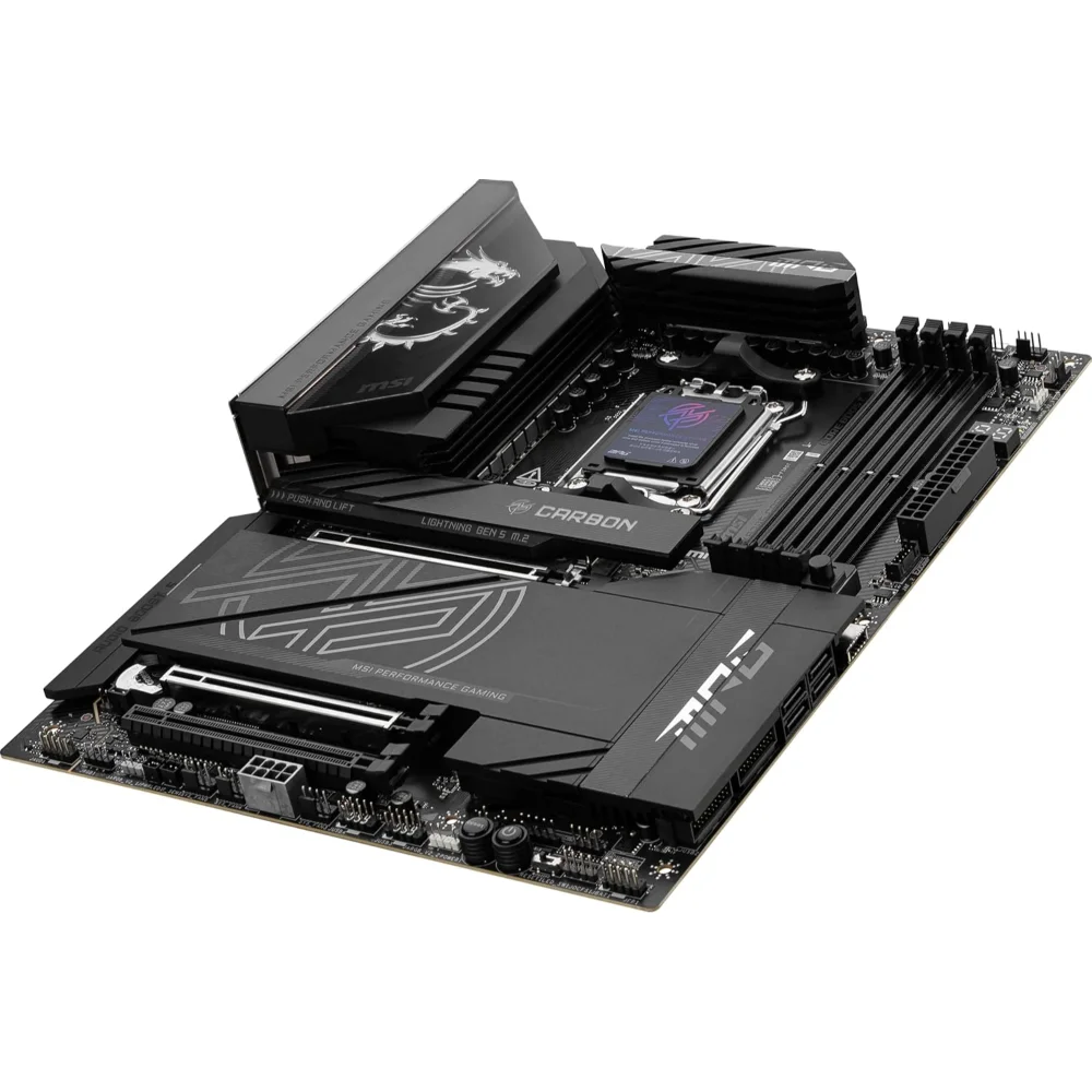 MSI MPG X870E Carbon WiFi AM5 DDR5 Gaming Motherboard (AMD Ryzen 9000/8000/7000 Series Processors, PCIe 5.0, M.2 Gen5, SATA 6Gb/s, USB 40Gbps, HDMI, Wi-Fi 7, Bluetooth 5.4, 5Gbps LAN, ATX)
