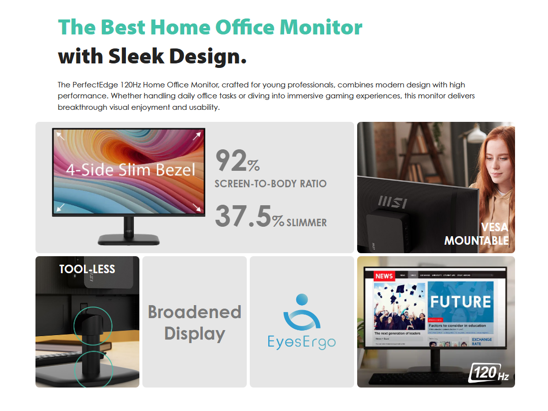 The PerfectEdge 120Hz Home Office Monitor, crafted for young professionals, combines modern design with high performance. Whether handling daily office tasks or diving into immersive gaming experiences, this monitor delivers breakthrough visual enjoyment and usability.