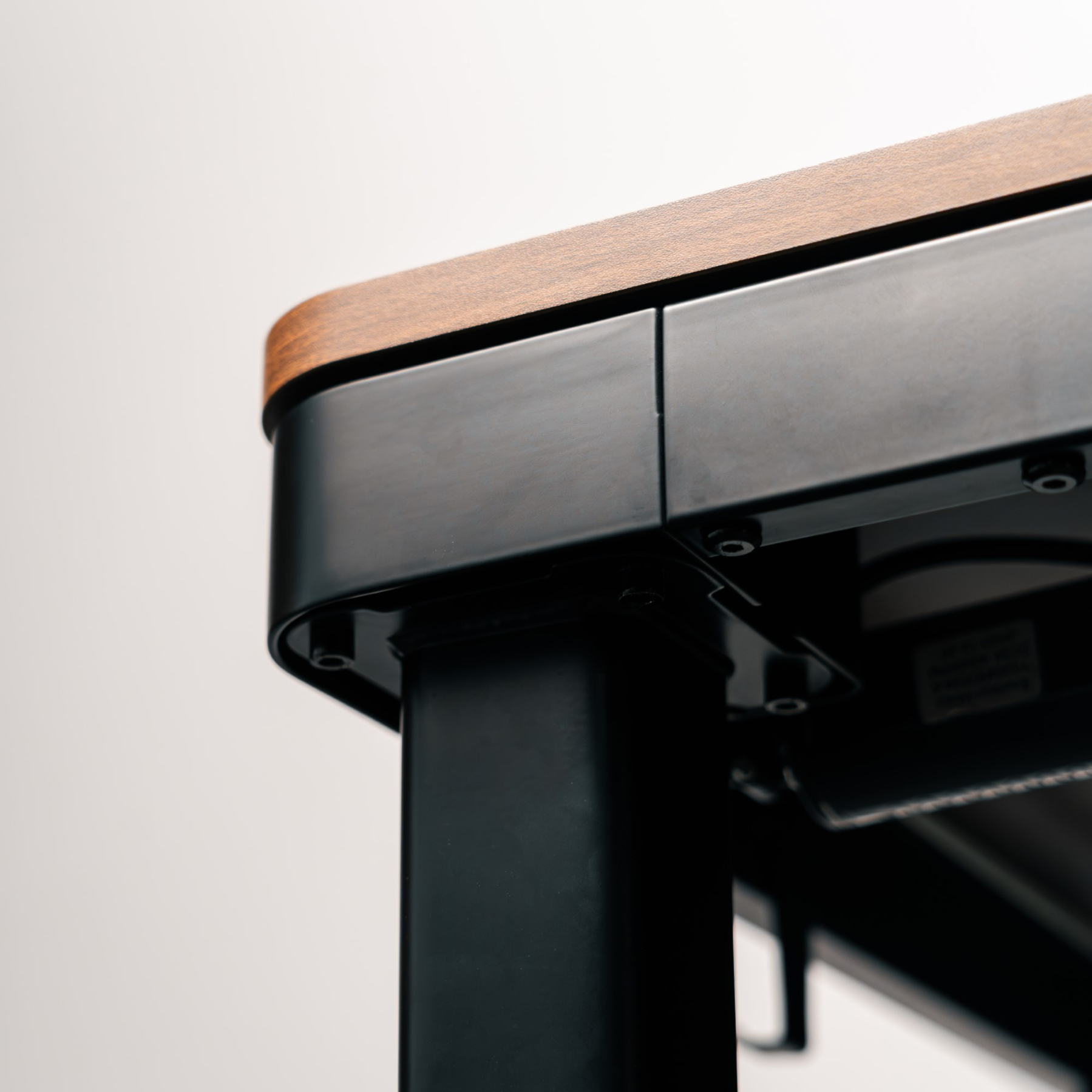• Spacious desktop with soft-close storage drawer