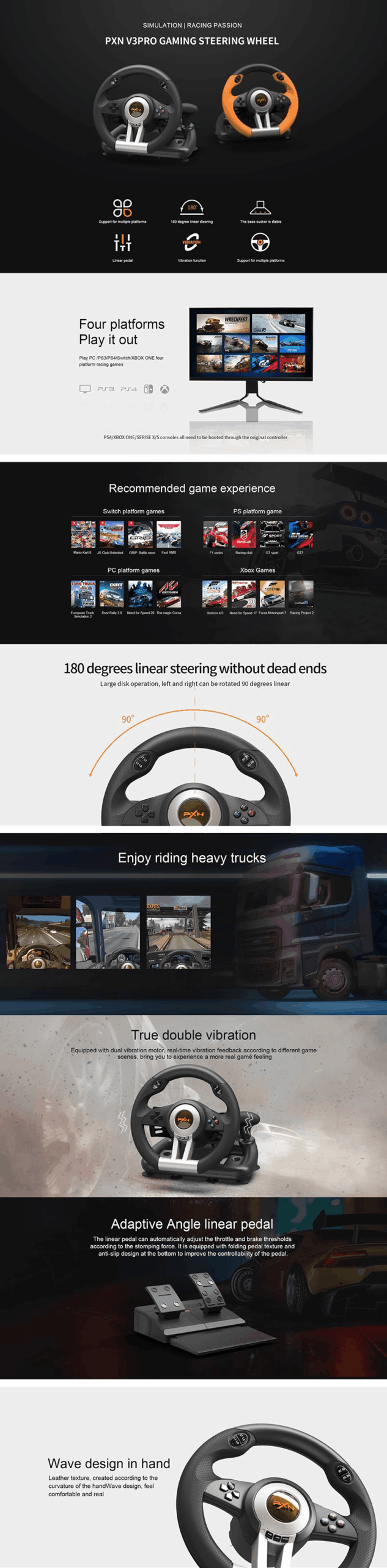 PXN V3 PRO Gaming Racing Wheel With Pedal FOR PC XBOX PLAYSTATION – Black Price in Pakistan
