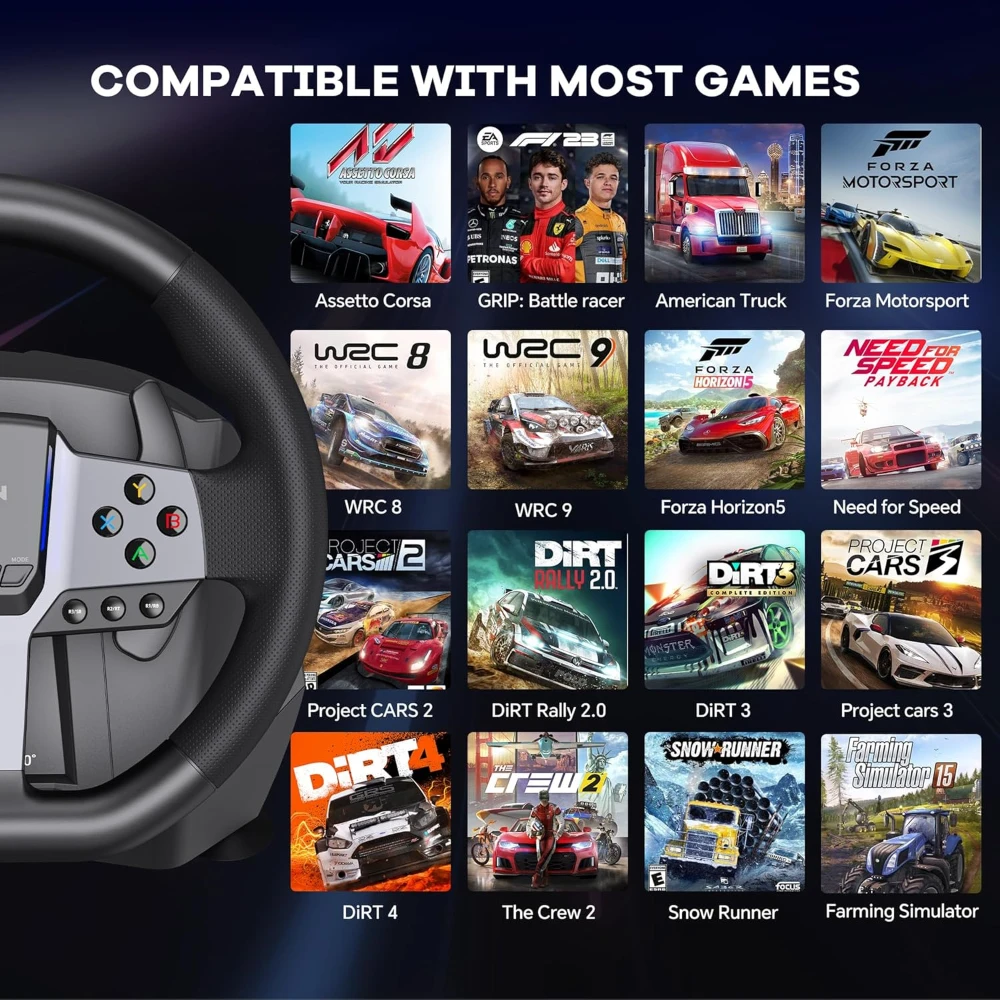 - Wide Compatibility & Easy Connectivity: Compatible with PC, PS3, PS4, Xbox One, Xbox Series S, and Xbox Series X, the PXN V9 Gen2 connects via USB for stable performance. Please note: Connection methods may vary by platform. Refer to the user manual for specific setup instructions.
