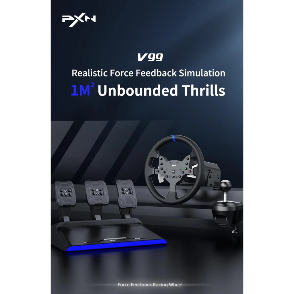 PXN V99 Gaming Racing Wheel, Driving Force Feedback Steering Wheel with Pedals and Shifter – 3.2NM, 270°&900°, 11.8 inch, 4 Paddle Shifters, Tools APP – Racing Wheel for PC, Xbox Series X|S, X and PS4