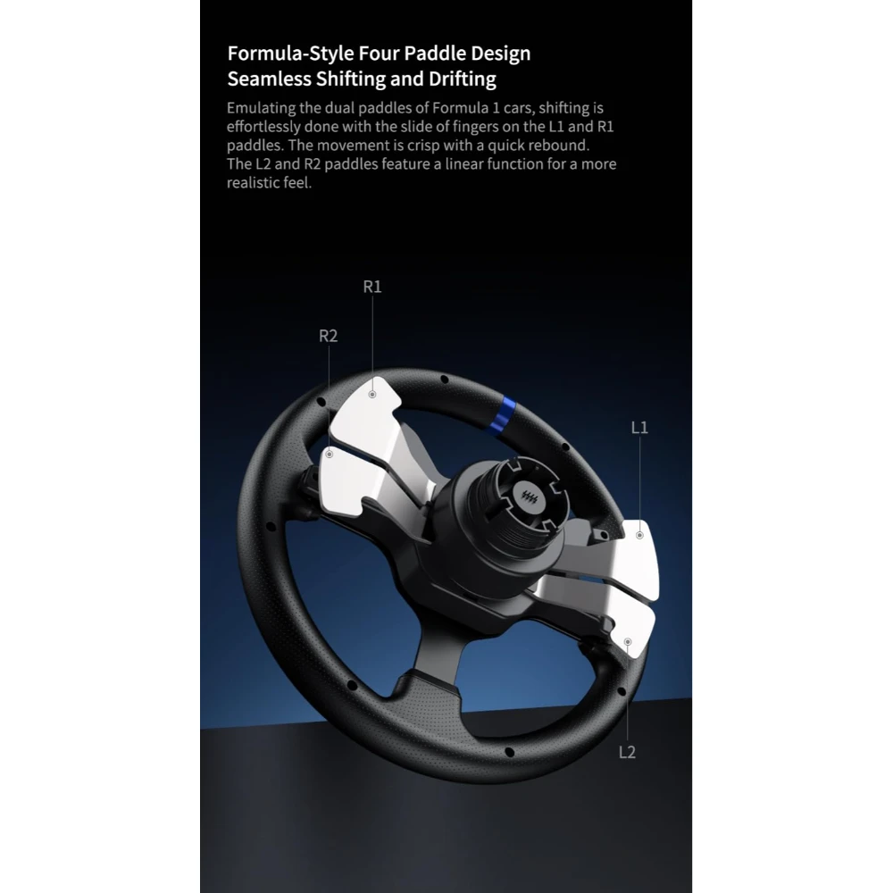 - 【PERSONALIZED ADJUSTMENTS AND MOBILE APP SUPPORT】 The V99 Steering Wheel allows users to personalize settings via a mobile app, adjusting parameters such as force feedback intensity, steering range, and button mapping. This highly customizable feature ensures you can finely tune the Racing Wheel’s performance according to personal preferences and gaming requirements, crafting a distinctive and tailored driving experience.