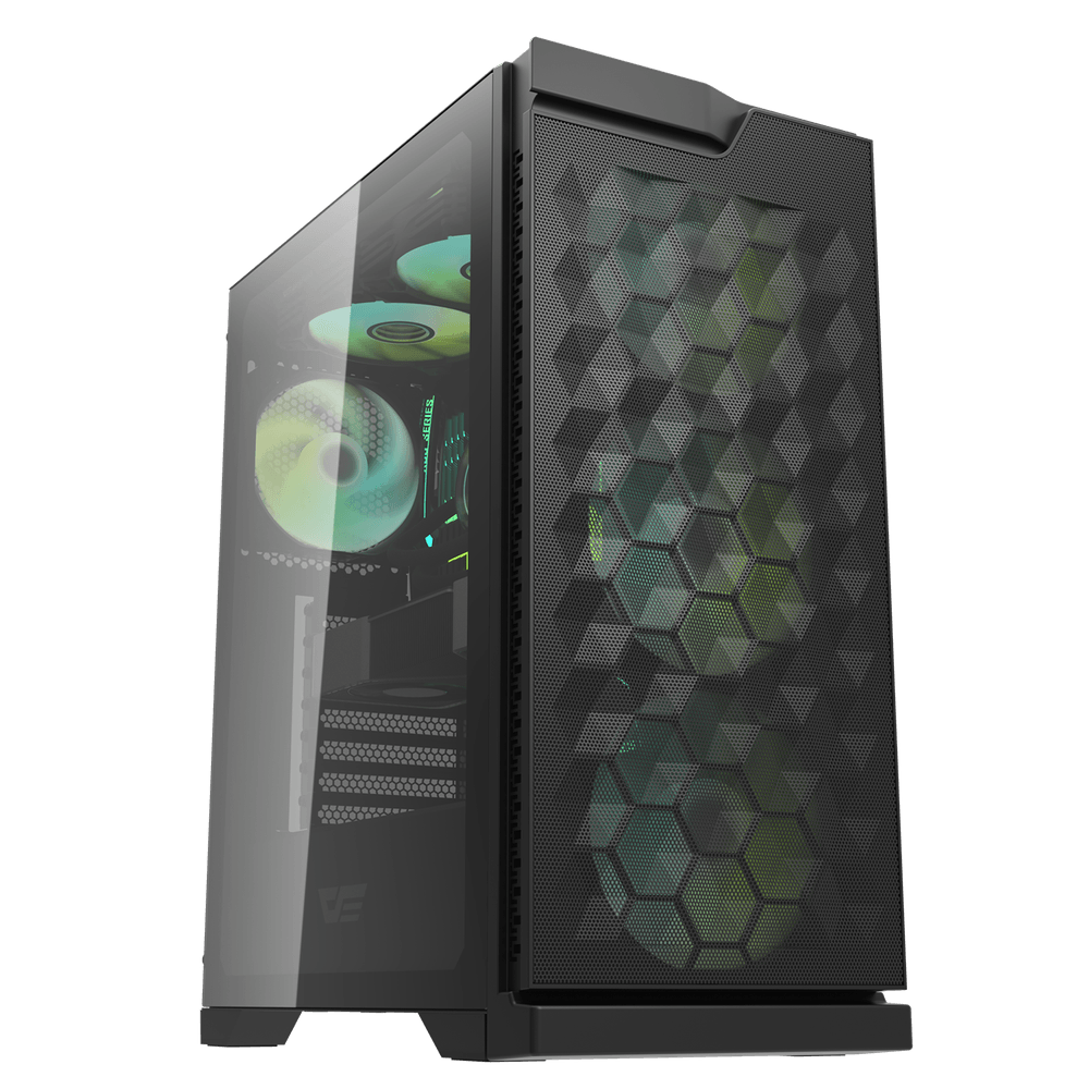 - Pre-installed 2x180mm PWM ARGB front fans and 1x120m PWM ARGB rear fan deliver extreme cooling out of the box, with a total maximum fan capacity of 8 fans.