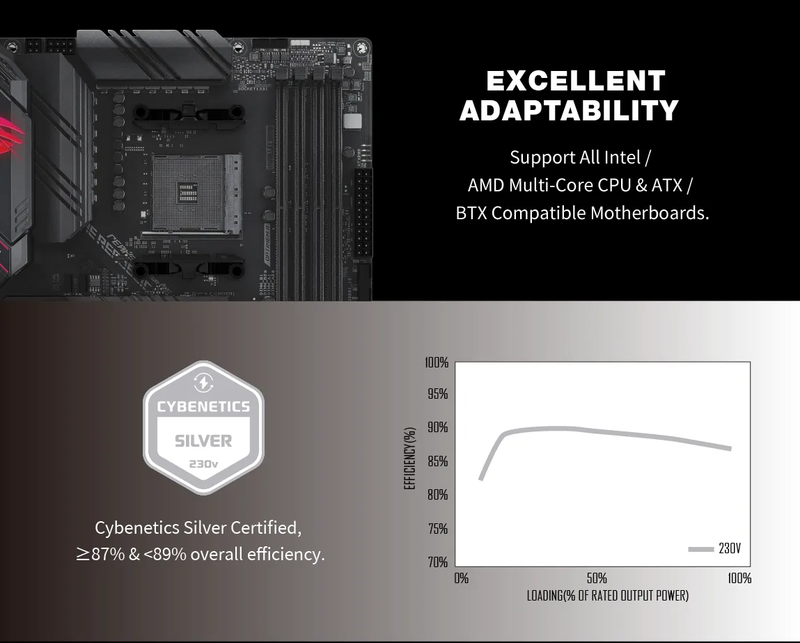 • Cybenetics Silver certified with ≥87% and <89% overall efficiency