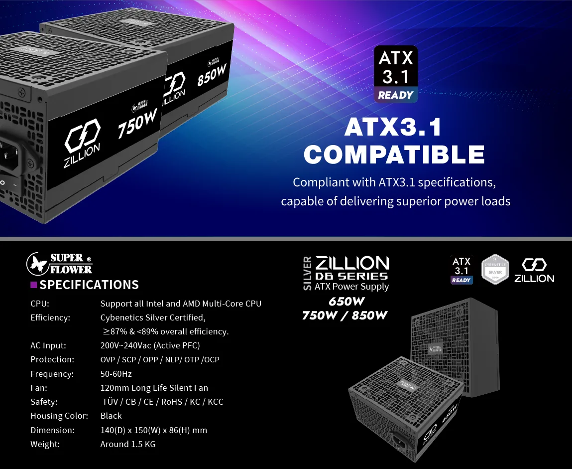 Super Flower Zillion DB 650W ATX3.1 (2025) 80+ Silver Power Supply