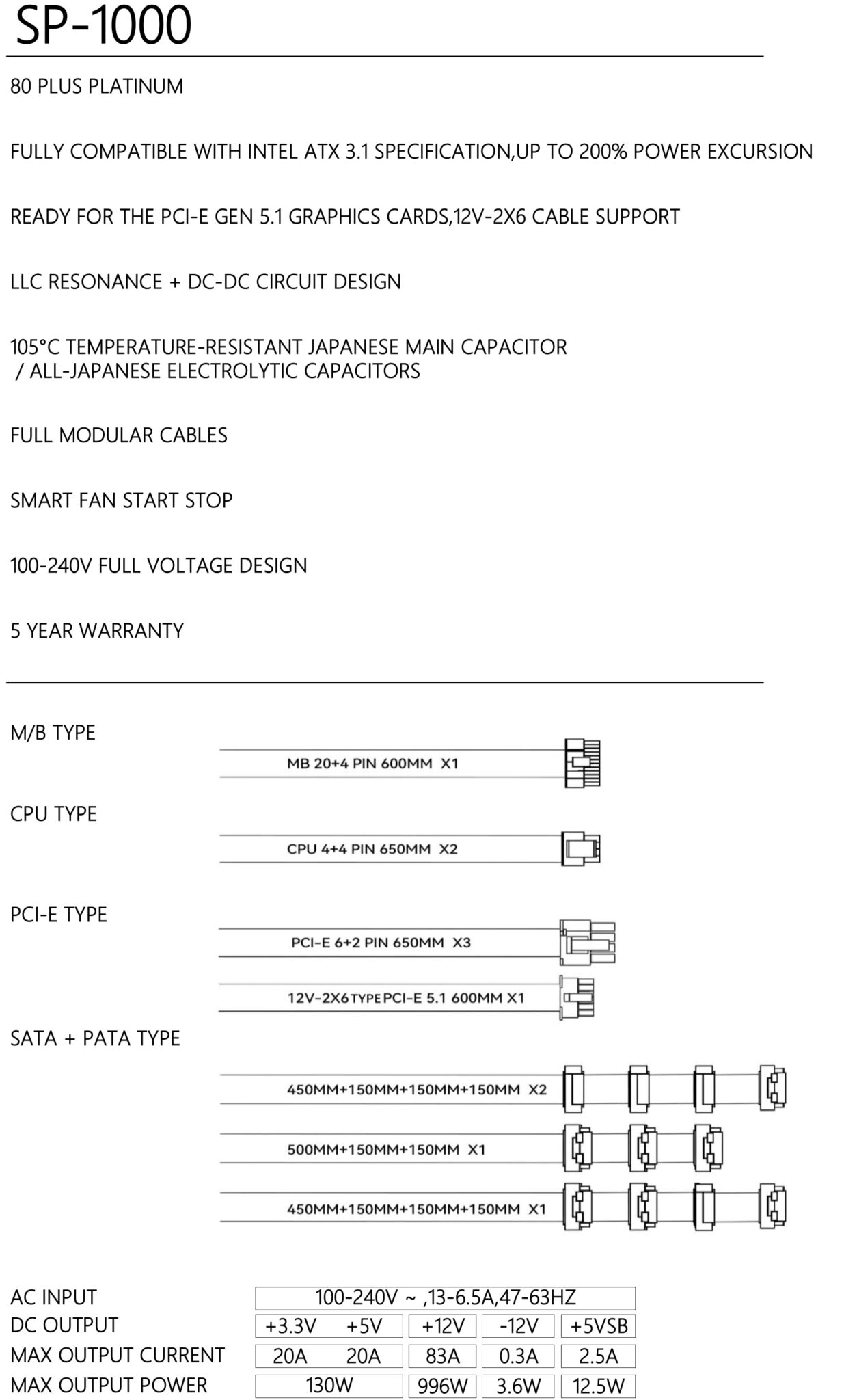 Thermalright SP-1000 1000W 80+ Platinum Fully Modular Power Supply Price in Pakistan
