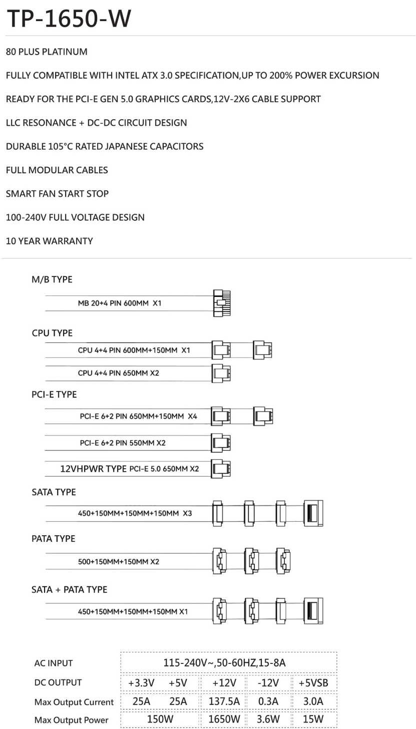 Thermalright TP-1650-W 1650W 80+ Platinum Fully Modular Power Supply Price in Pakistan