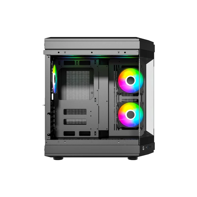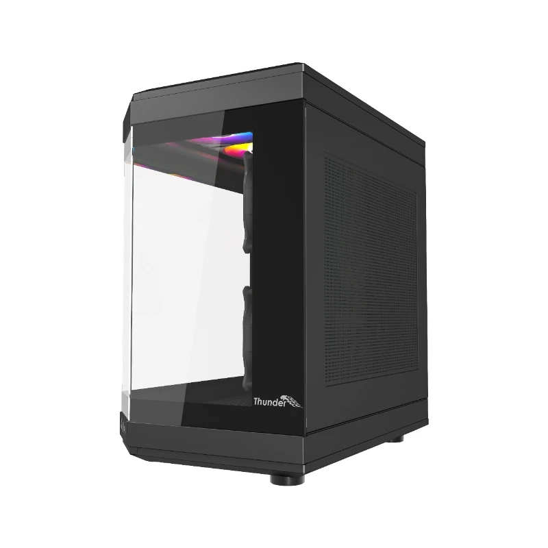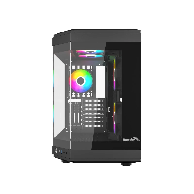 Thunder Carbon TGC-639B Modern Aesthetic Dual Chamber Panoramic Tempered Glass Mid-Tower ATX PC Gaming Case – Black