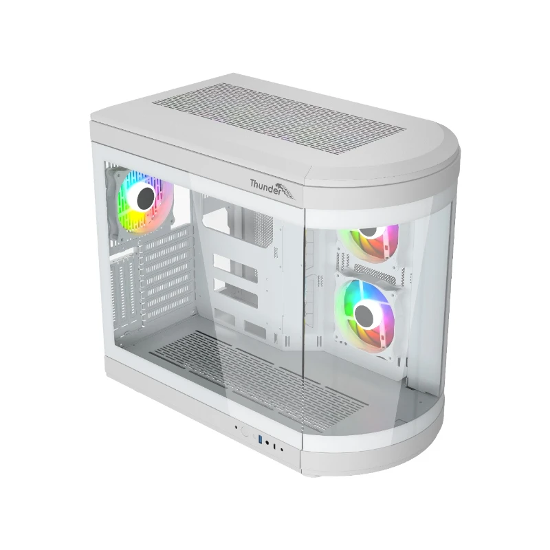 Thunder Rogue TGC-657W Modern Aesthetic Dual Chamber Panoramic Tempered Glass Mid-Tower ATX PC Gaming Case – White