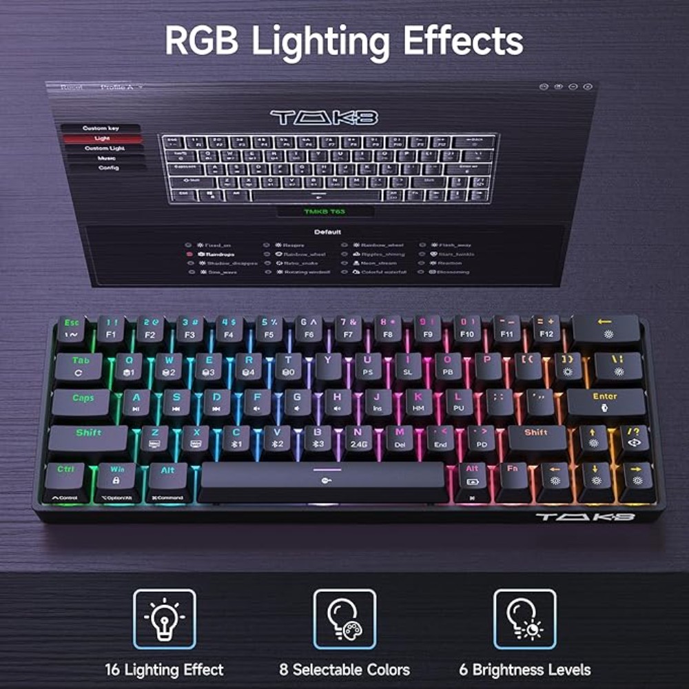 2 reviews for TMKB T63 Gaming Keyboard Wireless,Triple Mode BT5.0/2.4G/USB-C Mechanical Keyboard Wireless,63 Keys Wireless Bluetooth Keyboard,Rechargeable RGB Backlit 60 Percent Keyboard – Red Switch