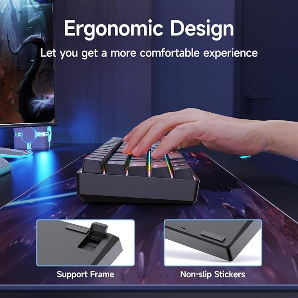 - Compact 60% Layout: Designed for space-saving efficiency,bluetooth keyboard features a compact 60% layout. Enjoy a clutter-free workspace without compromising on functionality or comfort.