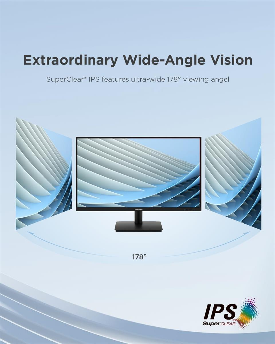 The ViewSonic VA270A-H is a 27” Full HD IPS monitor featuring HDMI and VGA inputs for gaming, business and home use. The optimal screen performance and comfortable viewing without tearing or stuttering is delivered through 120Hz variable refresh rate, Eye ProTech technology, and various ViewMode presets. Simply expand your workspace and experience truly seamless multitasking on just one screen with a VESA-compatible mount at a low power consumption.