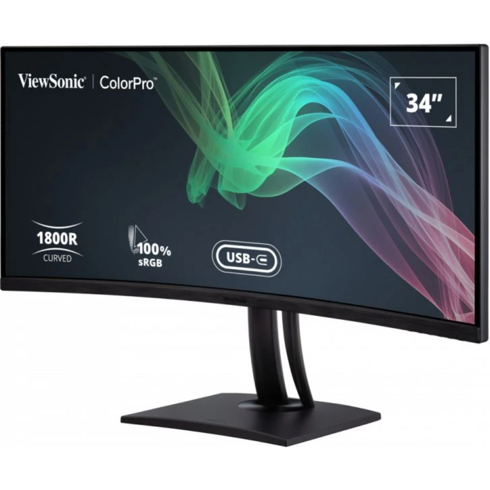 With an immersive curved screen and stunning UWQHD+ 3440 x 1440 resolution, the ViewSonic VP3481a monitor elevates your viewing experience from flat to panoramic. With Pantone validated 100% sRGB color coverage, and an amazing Delta E<2 value, this 4K monitor provides industry standard color accuracy to ensure superior results, while HDR10 compatibility delivers a wider dynamic range of vivid colors and richer contrast. Thanks to an expansive 34” frameless screen, ultra-wide 21:9 aspect ratio, and integrated speakers, this monitor is ideal for video editing, content development, and other color-critical applications. Featuring an incredible 100Hz refresh rate and AMD FreeSync™ technology, this monitor delivers smooth, tear-free playback ideal for video editors and game developers. With a sleek and modern design, the VP3481a features a future-proof USB-C port as well as DisplayPort technology, and HDMI. What’s more, HDCP 2.2 content protection is standard across all ports to provide secure 4K content playback, streaming and gaming. An integrated color uniformity function ensures consistent chromaticity across the screen, while a 14-bit 3D look-up table generates a stunningly smooth palette of 4.39 trillion colors. Hardware calibration is also available with the optional ViewSonic Colorbration Kit, which allows you to quickly and easily calibrate the monitor for photography, graphic design, and other professional applications.